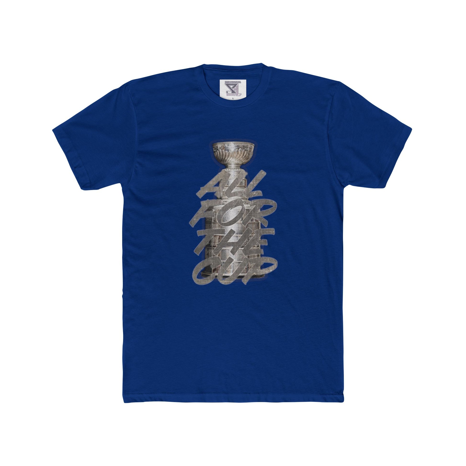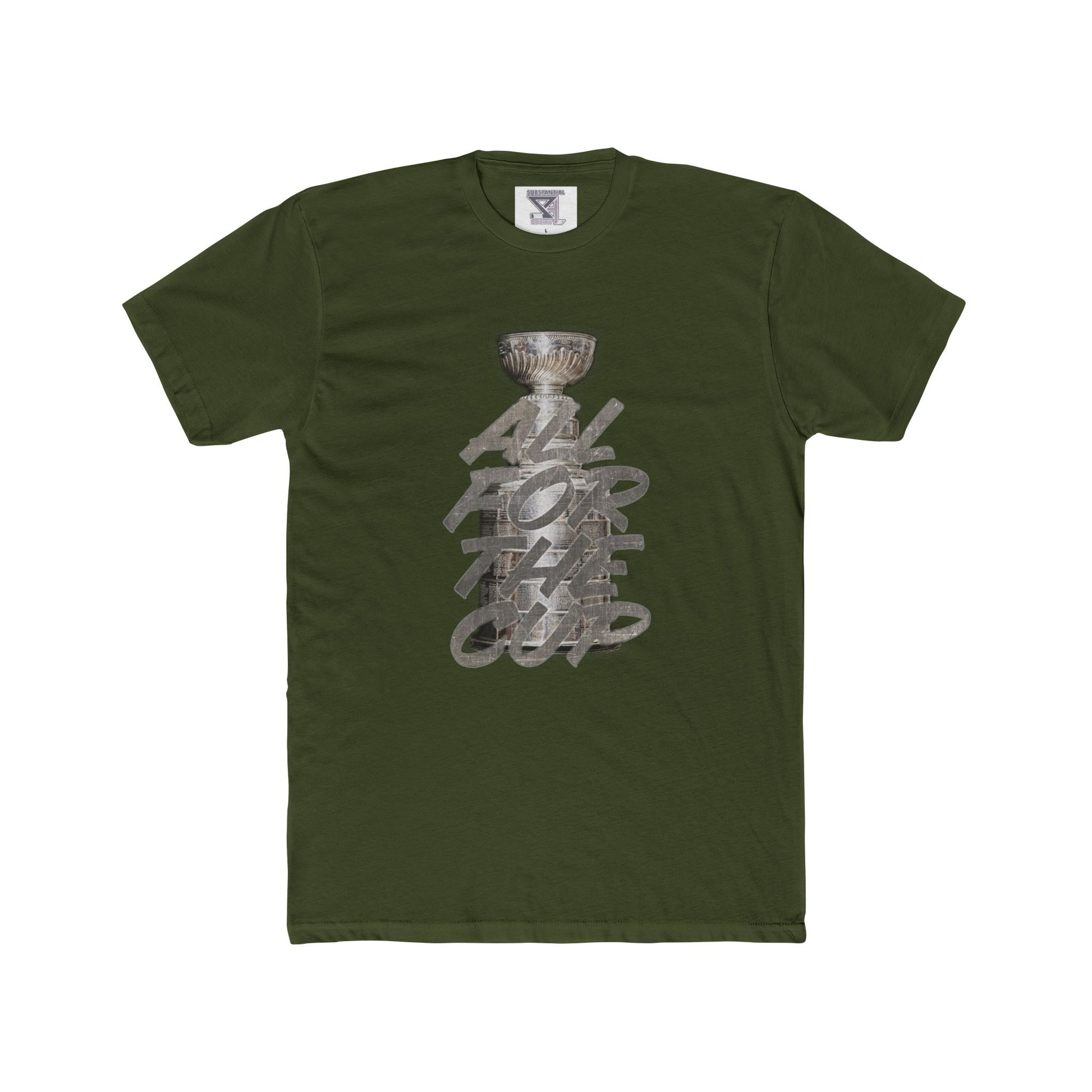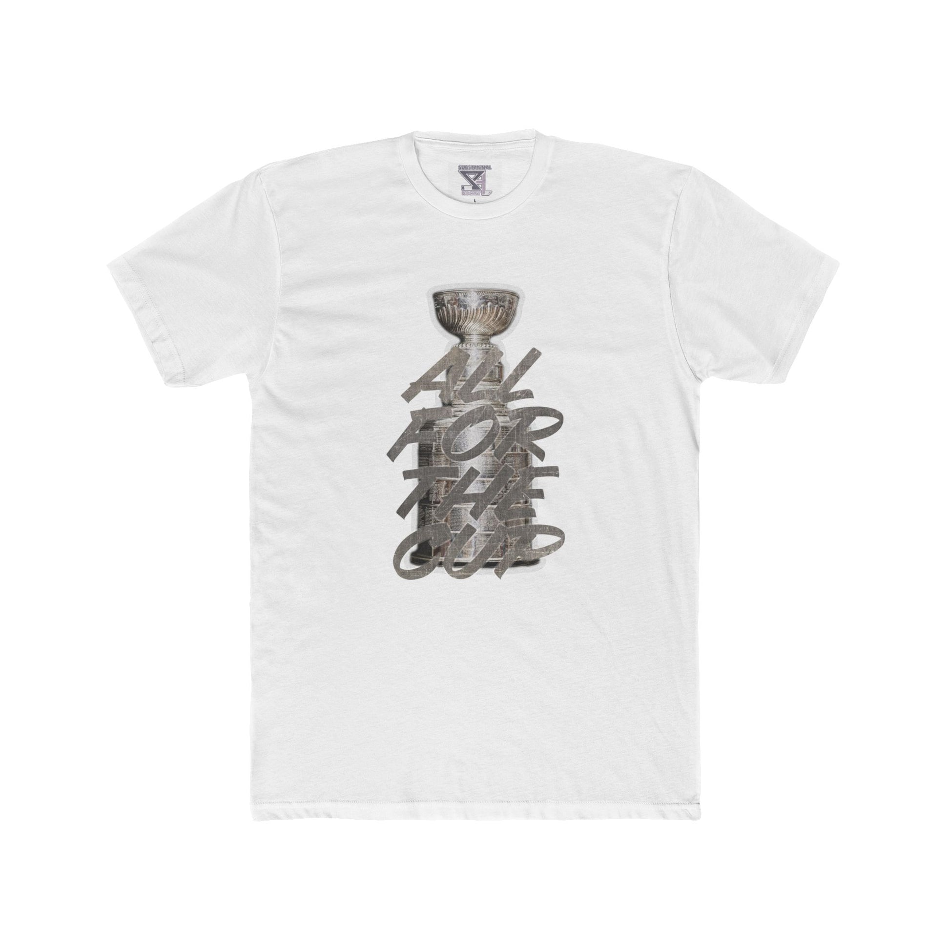 A versatile T-Shirt with a photograph of the Stanley Cup and text 'All For the Cup' on the front, perfect for NHL playoffs enthusiasts. Gives a sporty and competitive vibe, ideal for casual wear or game day. Target audience includes NHL fans and sports enthusiasts, relevant for playoffs season and hockey fans.